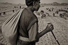 9) Нирмал Чандра пасёт стадо в поле. Он занимается этим с 1972 года, и начинал, помогая пасти стадо своего отца. Теперь он пасёт чужое стадо и получает за это эквивалент 45 долларов в месяц. 21 января 2009.
