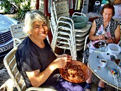 4. Под навесом делали джукджук (именно так называли его гостеприимные хозяева, ну и я буду). И все это происходило посреди сада, часть деревьев которого не без труда была опознана как миндаль. Я то думала, он растет сразу очищенный, а лучше копченый, в магазинах и лавках, а оказывается, все банально – в кожуре на деревьях.