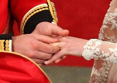16. Принц Уильям и Кейт Миддлтон обмениваются кольцами перед Архиепископом Кентерберийским Роуэном Уильямсом. (REUTERS)