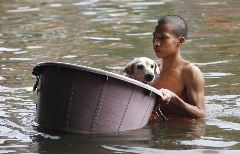Во время наводнения в Таиланде властям и жителям приходится заботиться не только друг о друге, но и о братьях меньших.