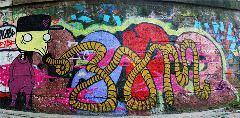 Современная культура городов весьма широка и разнообразна. Она охватывает все виды деятельности человека. Одним из них является граффити. Это своего рода искусство уличных стен, на которых изображают как простые слова так и изысканные рисунки. В Украине оно еще не получило должного развития и является довольно юным, 15 летним созданием. Киев, как и полагается столице, имеет немало примеров ярких и красочных стенных росписей, которые в большинстве своем, увы укрыты от глаз широкой аудитории.