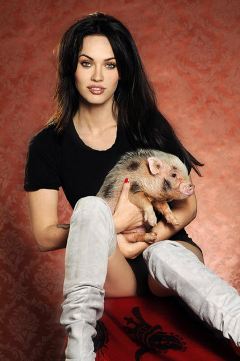 5. Меган Фокс со своей вьетнамской вислобрюхой свиньей Пигги Смоллс. (CHRISTOPHER AMERUSO / BARCROFT)