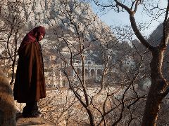 30. Мастер кунг-фу. Буддистский монах и мастер кунг-фу Ши Дэцзянь и его ученики поднимают мешки с цементом и черепицей по горным дорожкам для строительства отдаленного здания (на заднем фоне) подальше от толп туристов в храме Шаолиня. (Fritz Hoffmann)