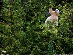 10. Мать двух медвежат взбирается на дикую яблоню, чтобы собрать урожай мелких фруктов. В годы, когда лосося мало, медведи должны искать другую пищу, например ягоды, коренья или мидии. (Paul Nicklen)