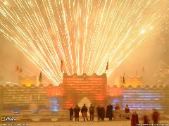 На этом снимке салюта на зимнем празднике есть и чувство безмятежности, и «взрывная» энергия. Присутствие людей, смотрящих на салют, говорит о динамике, а подсвечивающиеся ледяные скульптуры создают контраст с ощущением, будто в небе раздаются выстрелы. Вместо того, чтобы снимать салют со скоростным затвором, чтобы достичь классического «взрывного» эффекта, фотограф замедлил затвор на три секунды. И это лишь усилило взрывной вид фейерверка. (Mark Kurtz)