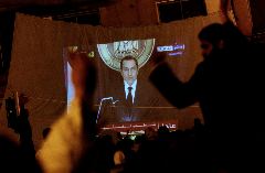 1. Президент Хосни Мубарак по записи объявляет о своем решении не выдвигаться на повторный срок. Пока непонятно, поддержит ли большинство египтян его решение остаться в должности до сентября, на который назначены выборы. Реакция десятков тысяч собравшихся однозначна: президент должен уйти сейчас! (Chris Hondros/Getty Images)