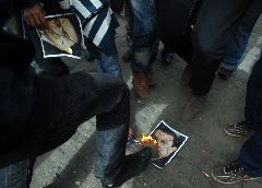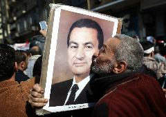 7. Для молодых демонстрантов Каира – а большинству протестующих еще нет 30 – президент Мубарак был единственным лидером, которого они знали. С детства их учили уважительно относиться к портретам лидера страны. А во время акций протестов фотографии Мубарака сжигали, по ним топтались, на них плевали. (Mohammed Abu Zaid/Associated Press)
