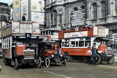 1. Лондонские красные автобусы на площади Трафальгар, 1928 г.