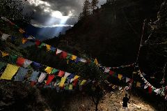 21. Бутанцы проходят мимо молитвенных флагов в монастыре Такцанг. (AP Photo/Manish Swarup)