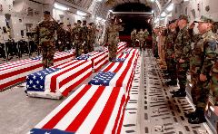 31. Гробы с телами американских военнослужащих перед выгрузкой на авиабазе Дувр в Делавэре. (REUTERS/USAF/ www.thememoryhole.org)