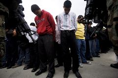 23. Подозреваемых показывают прессе в Тихуане, Мексика, 9 марта 2009 года. Мексиканская армия арестовала 58 человек на одной из местных вечеринок. (AP Photo/Guillermo Arias, File)