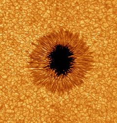 Один из самых четких в истории снимков солнечных пятен удалось сделать 24 августа в Калифорнийской обсерватории. Самая темная, центральная, часть пятна имеет температуру «всего» 4000о С, в то время как вся поверхность Солнца раскалена до 6000оС. Именно пятна являются областями, где солнечная активность достигает наивысших значений.