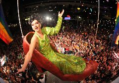 24. Представление «Суши» в исполнении пародистки Гэри Марион висит над зрителями в огромной туфле на Бурбон Стрит Паб 31 декабря 2009 года в Кей Уэст, штат Флорида. «Red Shoe Drop» - это традиция встречи Нового года в Кей Уэст в ответ на знаменитое шоу на Таймс-сквер в Нью-Йорке. (ANDY NEWMAN/AFP/Getty Images)