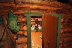 24. Бревенчатые избушки хантов обычно бывают низкими, с одной большой комнатой, перед которой располагается маленькая кладовка. В таком домике, как правило, бывает только два окна. Более традиционное жилье хантов, покрытый шкурами чум, сегодня строить слишком дорого.