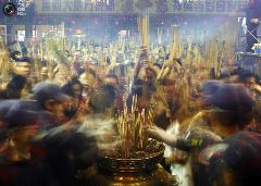 30. Китайцы молятся за удачу в храме, сжигая благовония. (REUTERS/Petar Kujundzic)