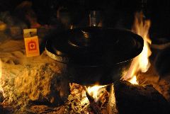 12. Пока мы неспешно выкладывали вещи, собирали дрова, солнце зашло и ему на смену выкатилась полная сырная головка луны. Похоже пора ужинать. Я чистить картошку отказалась, Костя стал помогать Измаилу, но Хадир позвал на помощь ребят из соседнего лагеря. Я сразу отметила, что Хадир уважаемый и толковый мужик, раз ему так охотно помогают разные люди, хоть и родственники, но не в первом колене. Нам готовили настоящий бедуинский ужин. В котелке кипел табих – жаркое из курицы (таки да!) и картошки.
