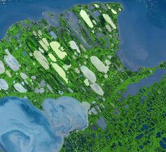 12. Дельта реки Иравади, Мьянма. Около 60% риса в стране выращивается в четырех штатах, расположенных в дельте Иравади. (NASA image by Robert Simmon, based on Landsat-7 data from the USGS Global Visualization Viewer)