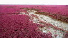 6. Превращение зеленых водорослей в красные происходит ежегодно на прибрежной полосе у дельты реки Ляохе, неподалеку от крупного китайского города Панъин.
