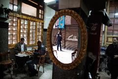 16. Владелец магазина отражается в зеркале в кафе на базаре Хан аль-Халили в Каире. Спустя почти год после свержения Хосни Мубарака бедное состояние некогда растущей экономики самой густонаселенной страны арабского мира угрожает мирной демократии. (Marco Longari/AFP/Getty Images)