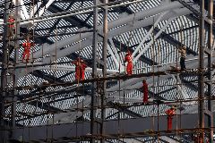 6.Китайские рабочие строят железнодорожную станцию в Гуанчжоу в южной провинции Китая Гуандун. STR/AFP/Getty Images