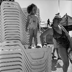 Вот что фотограф рассказывает про свою фотосерию “Пляж”:В “Люблю я курортные городишки и поселочки. Но тогда была ЯЛТА. И было хорошо оттого, что для работы в кадре не надо бродить целыми днями на пролет, чтобы кого-нибудь зацепить и уговорить и при этом не нужно объяснять, мол, ты не южно-корейский шпион.”