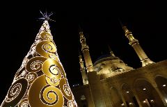 16. Рождественская ёлка стоит возле мечети Аль-Амина в центре Бейрута, Ливан, 18 декабря 2012 года. (Reuters/Jamal Saidi)