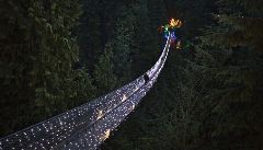 4. Люди идут по украшенному гирляндами висячему мосту над рекой Капилано в городе Север Ванкувер, Британская Колумбия, Канада, 10 декабря 2012 года. Мост длиной 135 метров был построен в 1889 году. (Reuters/Andy Clark)