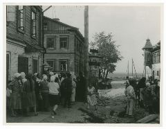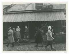 1. Советские граждане внимательно смотрят на заезжего американского фотографа у заведения под вывеской "ЦентроСПИРТлавка".
