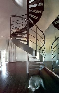 13. Пятый уровень - гостиная, кухня и столовая. СС‚арая лифтерская теперь превратилась в комнату отдыха, библиотеку, гардероб и дом для кота. (Bham Design Studio)