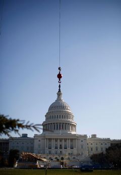 22. Этим краном, который как будто вот-вот поднимет в небо Капитолий, на самом деле устанавливали елку во дворе правительства США. (REUTERS/Jason Reed)