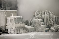 Чикаго, штат Иллинойс, США, горело огромное четырёхэтажное здание склада. Около 170 пожарных боролись с огнем, тут же получая удар от другой стихии — воды, которая превращалась в лёд на месте пожара и униформе. Как рассказывают в чикагской пожарной службе, столь крупный пожар посреди зимы является крайне редким и требовал очень серьезных усилий по тушению, которое длилось полночи и полдня. После окончания всех работ пожарище сияло в необычном снежно-ледовом покрове.