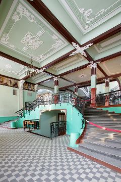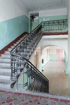 66. Боковой вход и боковые лестницы (расположены симметрично относительно главного входа в левом и правом углах здания)