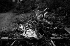 7. После разрезания шеи собаку положили в миску, чтобы дать стечь крови.