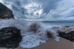 Пишет Михаил Шмелёв aka tibetmonk: “Оказаться подле большой воды, когда надвигается шторм – одно из самых сильных ощущений, которое мне доводилось испытать в жизни. Когда огромный живой организм проявляет характер, с лёгкостью ворочая бесконечную массу воды, яростно, до дрожи терзая прибрежные скалы, двигая камни, перемывая тонны песка – тогда ощущаешь себя ничтожной щепкой, увлекаемой могучим течением жизни.”