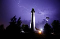 14) Вспышки молний над маяком Винд Пойт на озере Мичиган во время сильной грозы. Снимок сделан 18 августа 2005 года. (Darren Hauck/Getty Images)