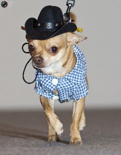 13. Чихуахуа в костюме ковбоя на подиуме на ярмарке домашних питомцев "Анималия" в Сент-Галлен 8 мая. (REUTERS/Miro Kuzmanovic)