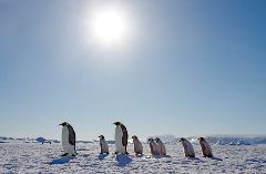 13. Императорские пингвины собрались на льду перед погружением в море. (PAL HERMANSEN / STEVEBLOOM.COM / BARCROFT MEDIA)