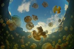 восточной части густо поросшего лесом острова Эил-Малк, входящего в состав архипелага Скалистые острова (государство Палау) находится удивительное морское озеро, в котором живет огромное количество медуз. Причем живут здесь медузы только двух видов - золотые и лунные.