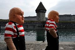 34. Участники швейцарского карнавала в Люцерне в костюмах. Карнавал в Люцерне - один из крупнейших в Швейцарии. Каждый год он собирает около 200 000 человек. (Sigi Tischler/Associated Press)