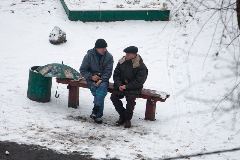 Женя не просто снимал, а исследовал целый социальный пласт населения Украины. Скамейка у него получилась еще и в виде образа раны, которая сама себя раздирает, углубляет, раздражает. Фотограф наблюдает за всем, что происходит на скамейке сверху, моделирует взгляд бога, развлекающегося и равнодушно В созерцающего происходящее. Такое впечатление, что это он поставил сюда скамейку и заставил фотографа приобщиться к жизни на ней, еще раз наставляя нас, что человек получился из земли: он "рожден грязью".