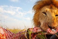 1. Лев ест гну на равнинах Масаи Мара. (Burrard-Lucas / Barcroft Media)