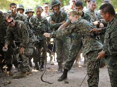 Морские пехотинцы из США, Японии, Сингапура и других стран прибыли в Саттахип, провинция Чонбури, Таиланд, чтобы пройти курсы выживания в джунглях юго-восточной Азии. Ежегодное мероприятие под названием "Золото кобры" (англ. Cobra Gold) должно научить солдат ориентироваться в лесу, защищаться от ядовитых растений и животных, разбивать лагерь из подручных средств, а также быстро добывать еду. Последнее испытание особенно шокирует, ведь нужно иметь дело с ядовитыми змеями, насекомыми, птицами и при этом не пользоваться костром, чтобы не привлекать внимание. СС‡итается, что свежая кровь кобры лучше всего насыщает организм.