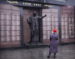 7. Через два месяца, когда молдавская полиция попыталась насильно поставить контрольные пункты в регионе, началась гражданская война. Она длилась два года, стоила жизни около 700 военных и гражданских лиц. Конфликт завершился договором о прекращении огня, подписанным в июле 1992 года, хотя напряжение не исчезло до сих пор, т.к. политический статус Приднестровья остается неопределенным. На фото: женщина смотрит на имена погибших, высеченные на военном памятнике в центре Тирасполя. (Amos Chapple / Rex Features)