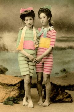 Гейши, позирующие в купальниках на пляже — открытки с такими изображениями в Японии рубежа 19 и 20 веков были самым популярным (и, вероятно, единственным известным) видом пин-апа.