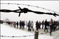 Над входом в первый из лагерей комплекса (Аушвиц-1) нацисты разместили лозунг: "Arbeit macht frei" ("Труд освобождает"). Чугунная надпись была похищена в ночь на пятницу 18 декабря 2009 года, и обнаружена через три дня распиленной на три части и подготовленной к переправке в Швецию, арестованы 5 мужчин, подозреваемых в этом преступлении. После похищения надпись была заменена копией, изготовленной во время реставрации оригинала в 2006 году. Свыше 1 500 000 человек, большинство из которых составляли евреи, подвергались пыткам и были умерщвлены в лагерях Освенцима. На территории лагеря в 1947 году был создан музей, который включён в список Всемирного наследия ЮНЕСКО.” В© wiki.