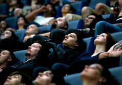 24. Люди присутствуют на премьере фильма "Тёмный рыцарь: Возрождение легенды" в кинотеатре музея науки "Liberty Science Center" в Джерси-Сити, штат Нью-Джерси, 20 июля 2012 года. (Julio Cortez/Associated Press)