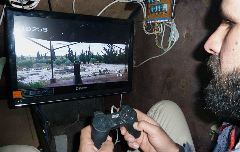 20. Сирийский повстанец при помощи джойстика управляет пулеметом Шам 2 в Бишкатине, 4 км к западу от Алеппо, 8 декабря 2012. (Херве Бар/AFP/Getty Images)