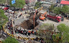 11. Апрель 2011: обвал дороги в районе Пекина. дыру провалился грузовик, но водителя удалось спасти, и никто не пострадал. (KeystoneUSA-ZUMA / Rex Features)
