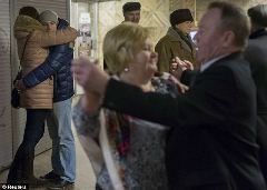 Глядя на эти фотографии, с первого взгляда можно подумать, что это обычный танцевальный зал. А затем вы замечаете, что многие танцоры очень тепло одеты. Киеве пенсионеры встречаются на станции метро Театральная каждое воскресенье, чтобы повидаться с друзьями и потанцевать. А некоторые на закате жизни находят здесь настоящую любовь.