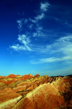 Яркие краски радуют глаз – красноватый песчаник местных гор играет на солнце множеством оттенков. Цветные горы Китая испещрены рисунками причудливой формы, напоминающими морские волны.